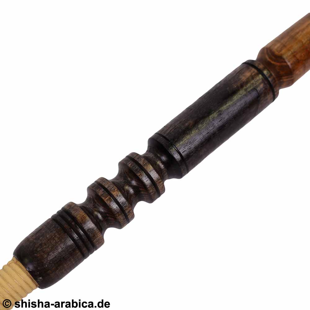 Das Mundstück des Schlauches ist aus Holz und im Inneren des Schlauches befindet sich eine Metallspirale.